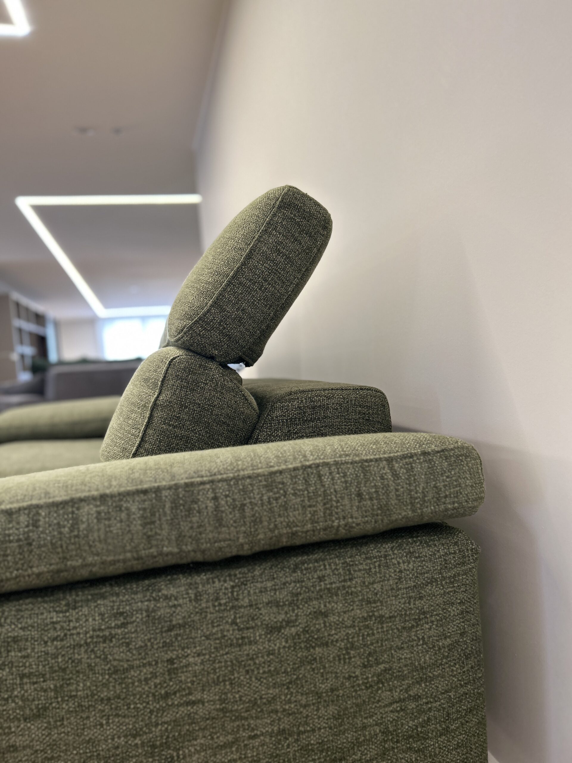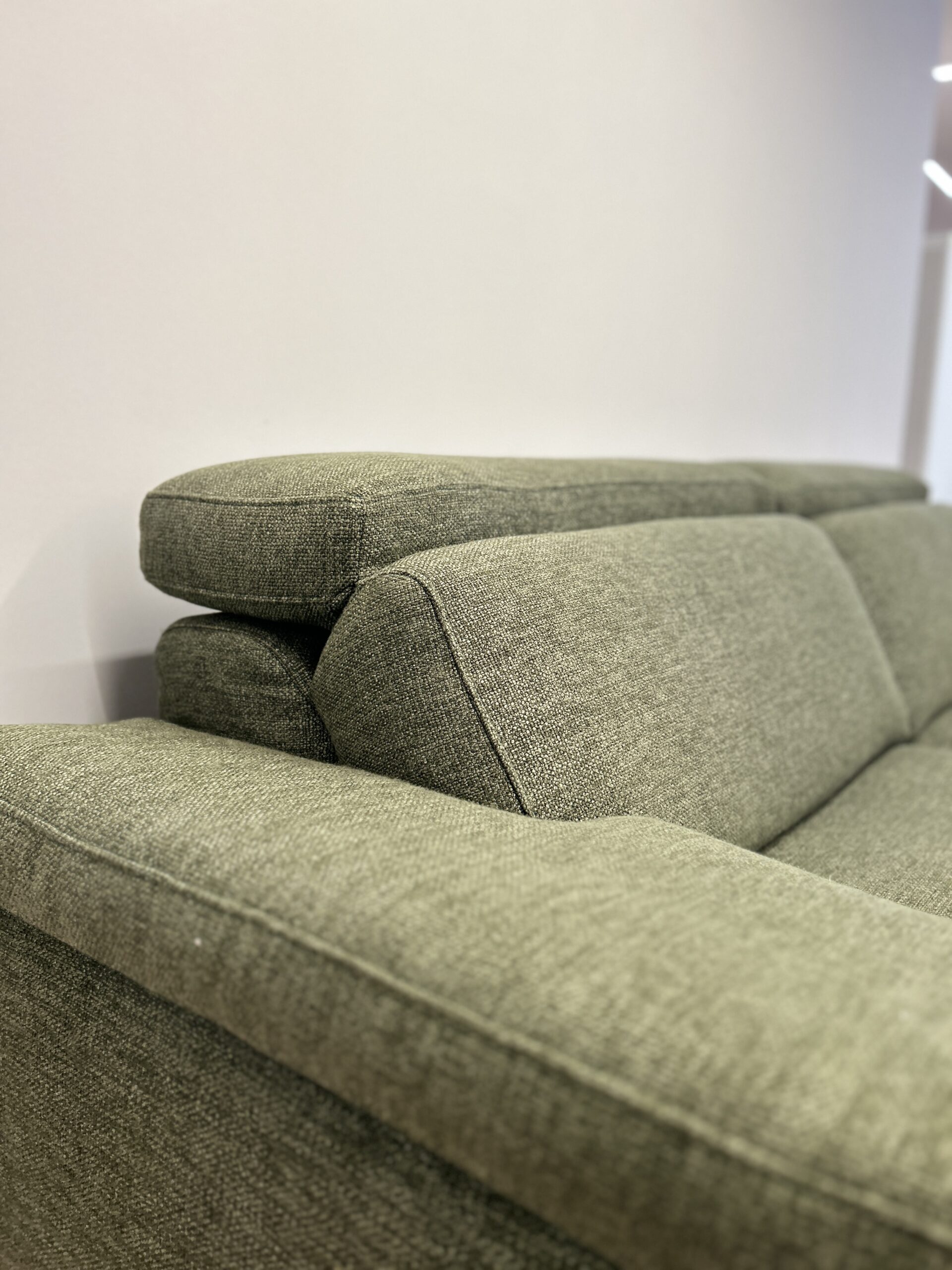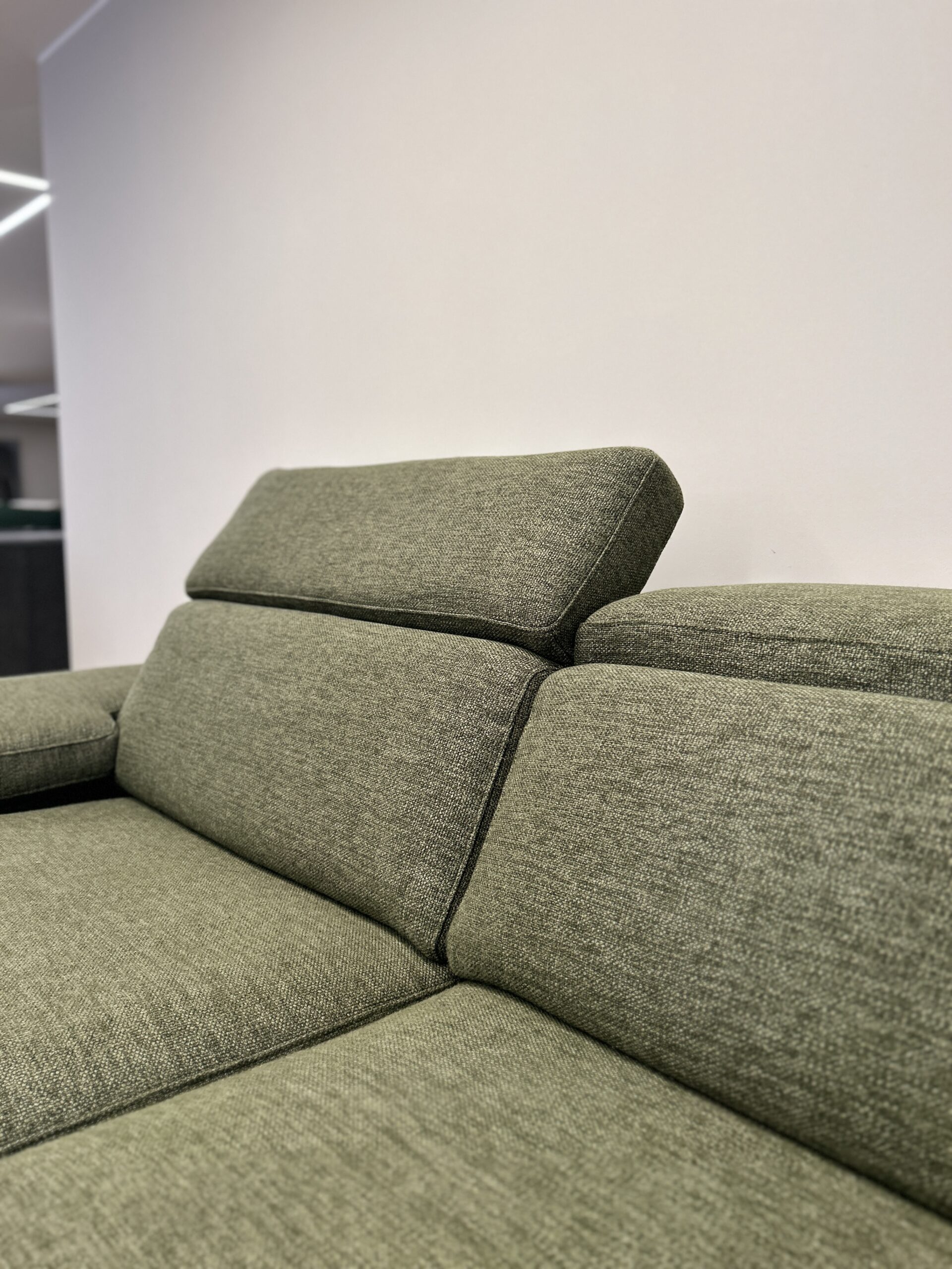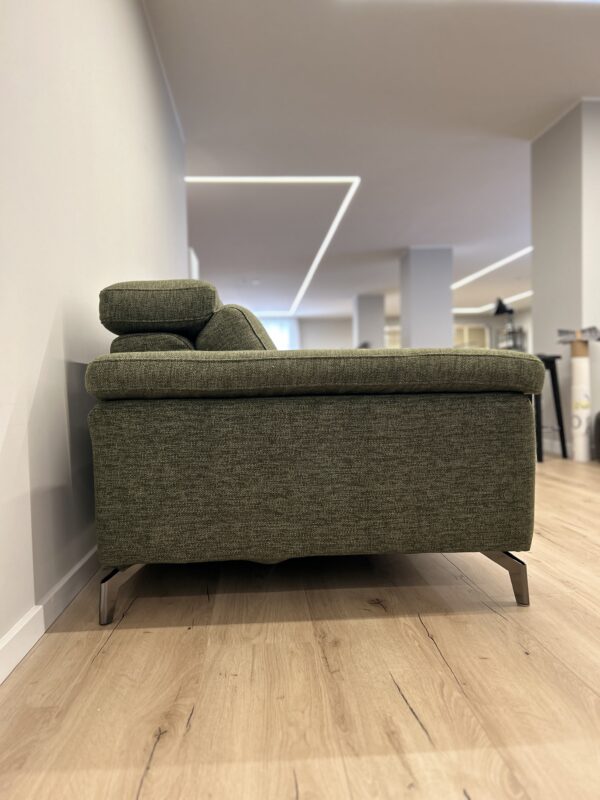 Forme morbide e tradizionali rendono Space Action un divano espressione di relax assoluto. CM L230 P105 in tessuto Exclusive Verde, dotato di poggiatesta regolabili.