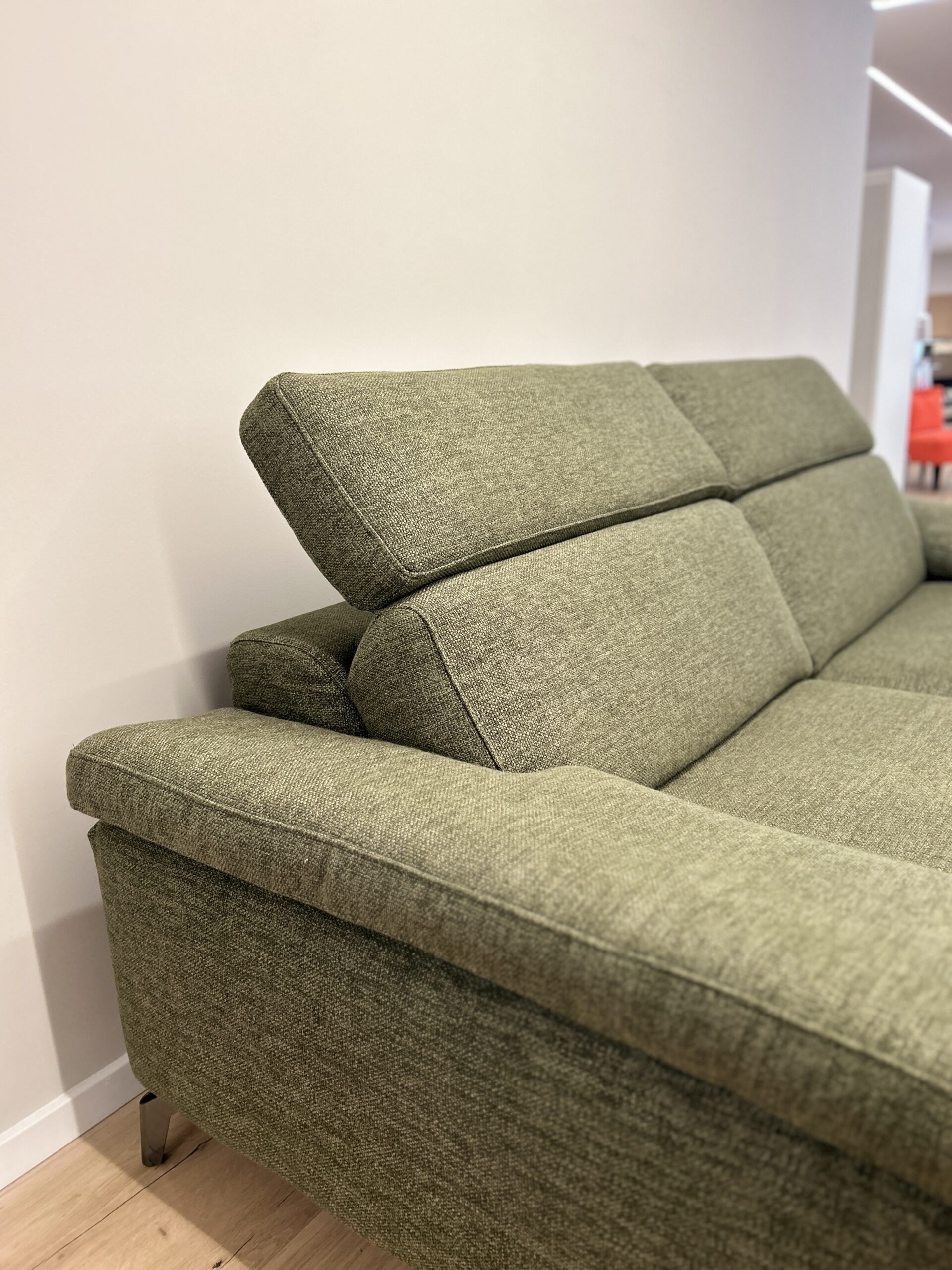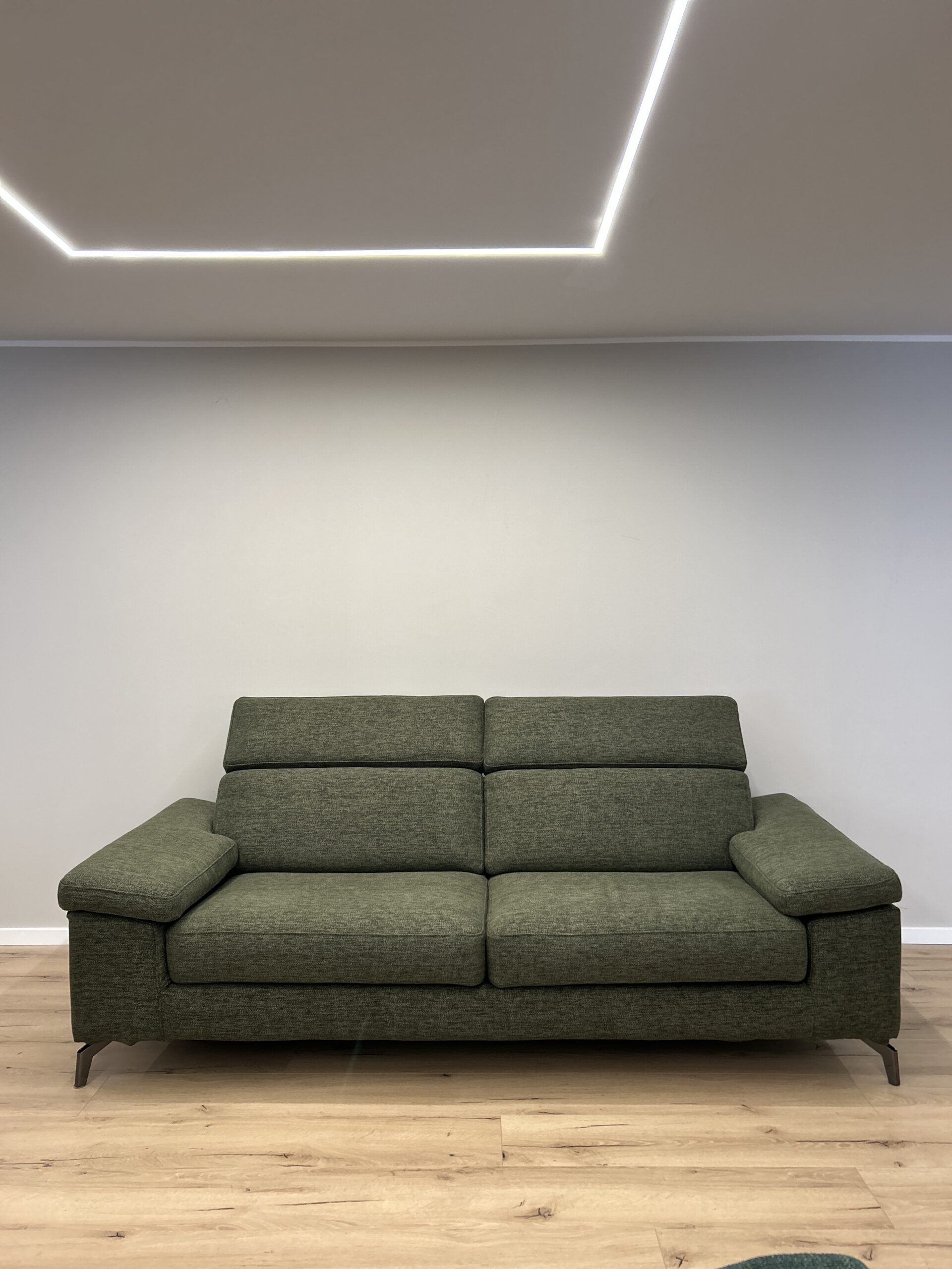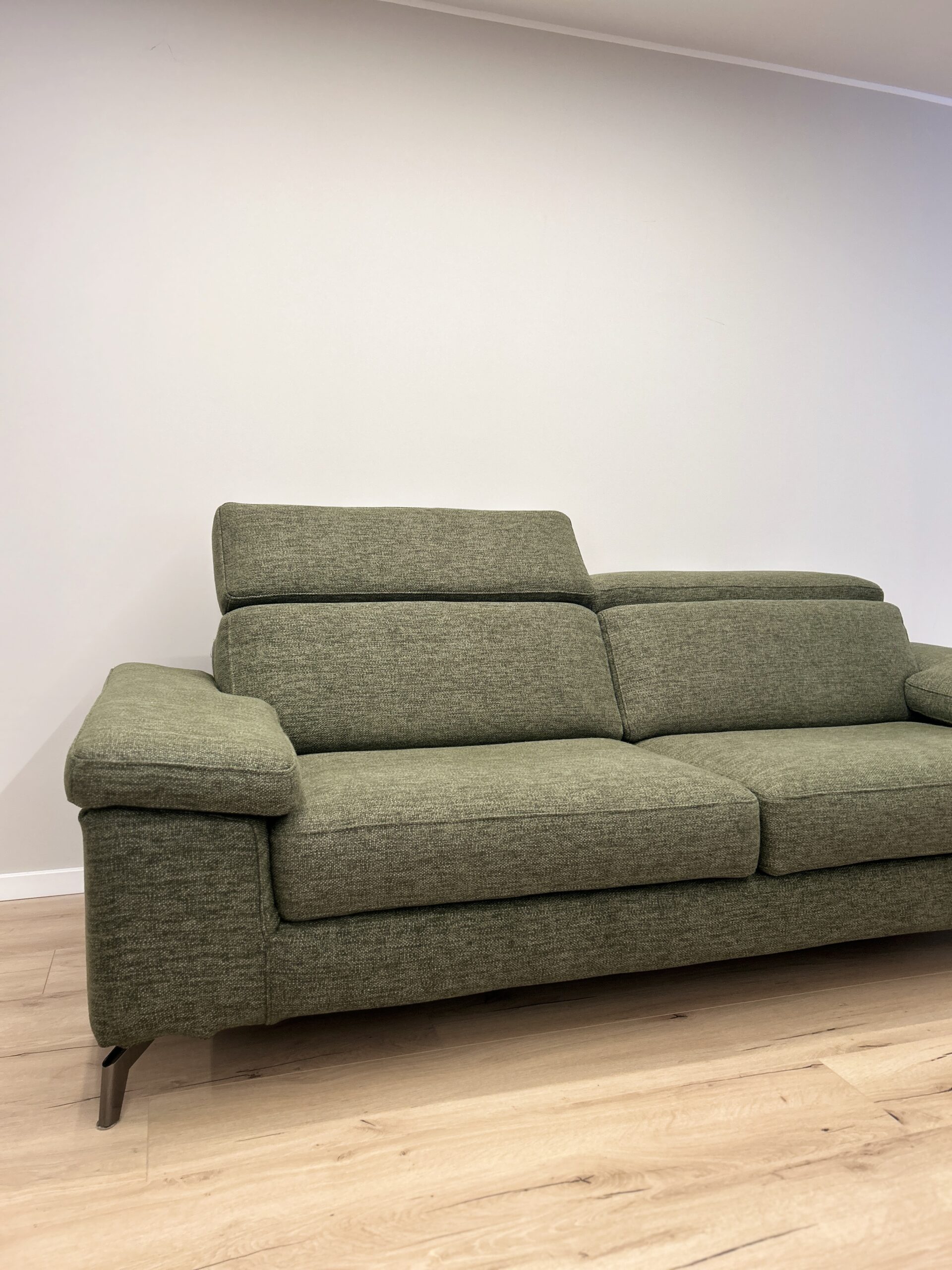 Forme morbide e tradizionali rendono Space Action un divano espressione di relax assoluto. CM L230 P105 in tessuto Exclusive Verde, dotato di poggiatesta regolabili.